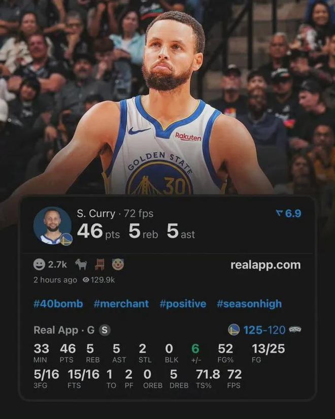 已经37岁的库里,依然保持着劲爆的竞技状态,本赛季至今场均出战30.3分钟,砍下27.1分3.5板3.9助1.5断,投篮命中率45.3%,场均以36.9%命中率扔进4.1记三分球,还是当今联盟最致命的神射手,场均得分为近三个赛季的新高。