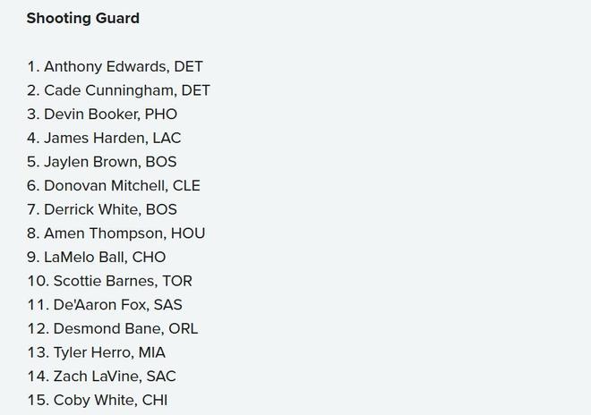 11-15名:小贾伦杰克逊、切特、恩比德、特纳、杰伦杜伦。