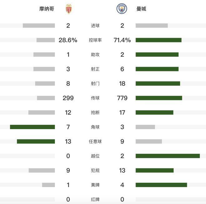北京时间10月2日,2025-26赛季欧冠联赛阶段第2轮,曼城客场2-2战平摩纳哥,无缘两连胜。哈兰德梅开二度,特泽扳回一球,尼科-冈萨雷斯送点,戴尔点射绝平。