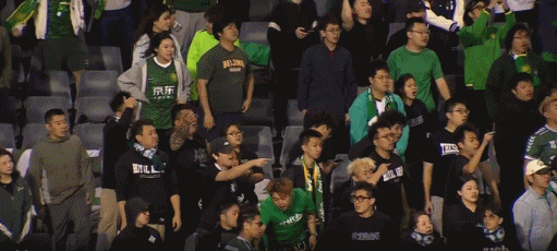第36分钟,裁判判罚张玉宁犯规,国安球迷表示不满
