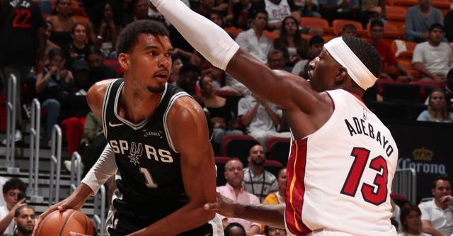 季前赛-马刺险胜热火文班亚马10+4+5遭隔扣 韦尔29+12